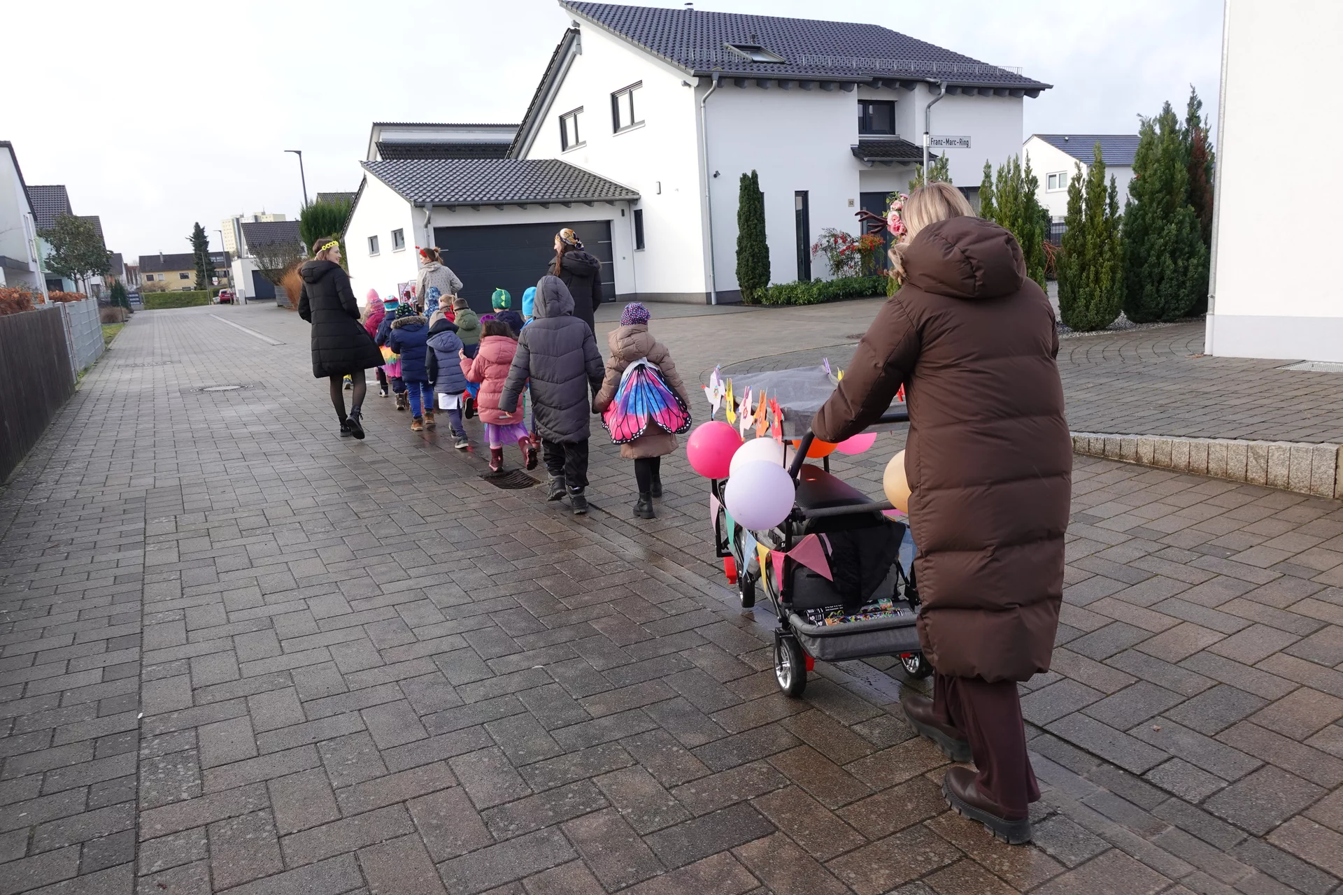 und lauter Musik zogen die Kinder und ErzieherInnen durch